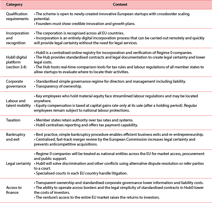 This Policy Brief sets out Regime 0: an optional European Union corporate regime that would lower the barriers to new, independent ventures with innovative ideas that offer fast growth potential and that naturally need scale. Regime 0 would be a tailored legal and regulatory framework for scaling up startups and thus unlocking much-needed EU innovation capacity. Under Regime 0, such startups would be able to incorporate swiftly and get legal crossborder recognition, easing access to crossborder finance and key talent. Regime 0 deliberately avoids harmonisation of general corporate, labour and tax regulations, which would remain under EU member-state jurisdiction.