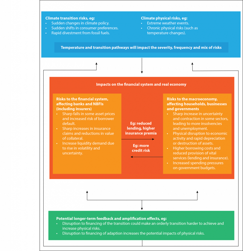 At the same time, central banks have assessed the implications for the financial system and worked with firms to assess the impacts of climate-related risks under different scenarios4. Action to respond to a changing climate and to drive the transition can have an impact on both the economy and financial system.